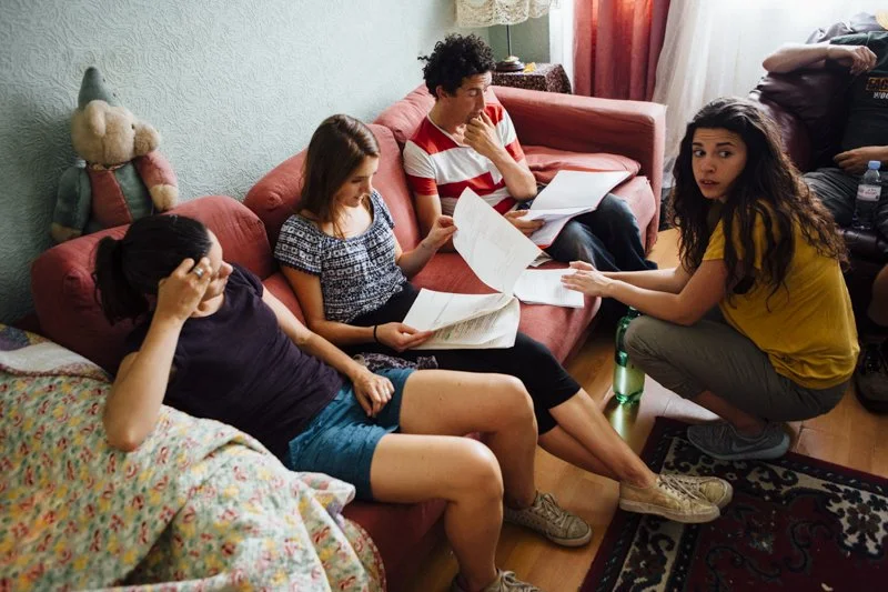 Stella Corradi, Maddy & Robbie Ryan studying that script!