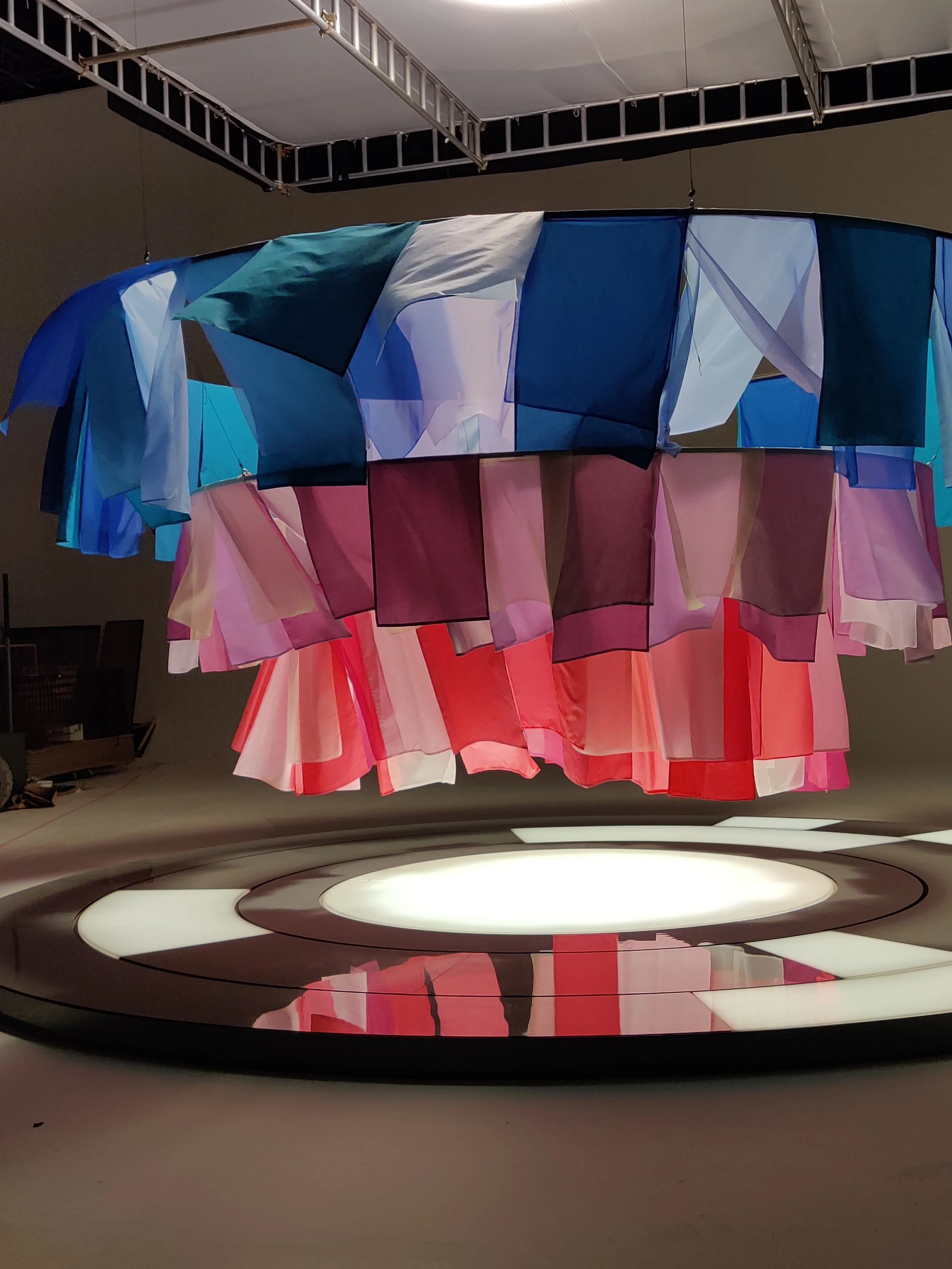 Miele why Miele. Maker of this large fabric installation for Production designer: Mark Connell