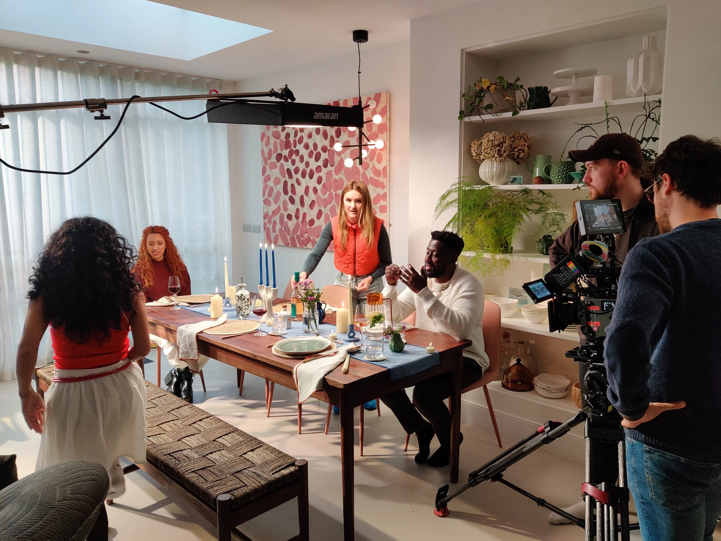 Behind the scenes for 'Here We Flo' commercial, where did the production design in a stately home.